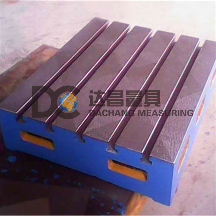 鑄鐵平臺可用于焊接、裝配、劃線、檢驗等工作,一般只需要工作面的精度,底部配調節支架或調整墊鐵進行調平。鑄鐵平臺除了應用在以上幾種工作中,還可以作為機床的輔助工作臺使用,這種鑄鐵工作臺,就需要做成底上面平行的方式,這樣才能跟機床的主工作臺匹配。鑄鐵平臺的工作面一般是刮制的,采用人工刮研的方式來達到理想的精度,需要做平行的鑄鐵平臺,就要把底面也做刮研處理。鑄鐵平臺平行度還可以通過數控加工的方式來進行處理,數控加工的時候要一刀下去,不然平行度就不好保證。一般采用數控加工的鑄鐵平臺,加工完成后,在數控上加工完下活以前,平面度可以保證在0.03/平米,平行度在0.05/平米。鑄鐵機床輔助工作臺在加工完成后,安裝到機床上后,用機床再加工一刀,就可以進行使用了。