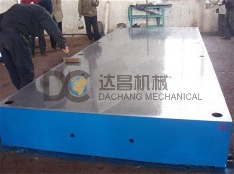 刮研平臺能保證得到準確形狀,尺寸,比較高的精度和表面的光潔度,其中在研磨加工中有一種嵌有金剛砂磨料的平板上進行磨砂的形式,在這種形式中研具是主要工具。該研具稱為嵌砂磨平板,研磨平板具有組織均勻,結構致密,無砂眼氣孔、無疏松等特點,上砂容易,砂粒分布均勻豐富,砂粒嵌入牢固切削性能強,表面光潔,油亮,呈天藍色,耐研磨性好。